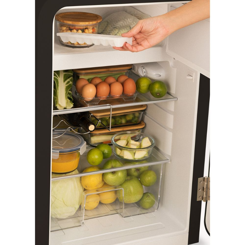 El Create Fridge Retro 107L Negro es un frigorífico compacto de estilo retro con una capacidad total de 107 litros, diseñado para conservar alimentos y bebidas en espacios reducidos. Es ideal para personas que viven solas, parejas, estudiantes, oficinas, segundas residencias o quienes buscan un electrodoméstico funcional con un diseño distintivo.