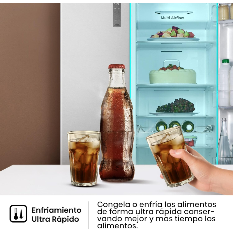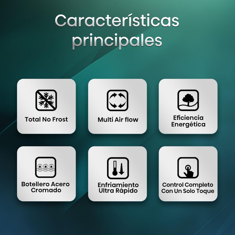 Este frigorífico ofrece bonificaciones como mayor comodidad en el día a día, ahorro de tiempo al evitar la descongelación manual, y mejor conservación de los alimentos gracias a su tecnología de enfriamiento uniforme. Frente a otros usuarios con frigoríficos convencionales, quien lo utiliza disfruta de mayor capacidad, mejor organización interna y un control más preciso de la temperatura.
