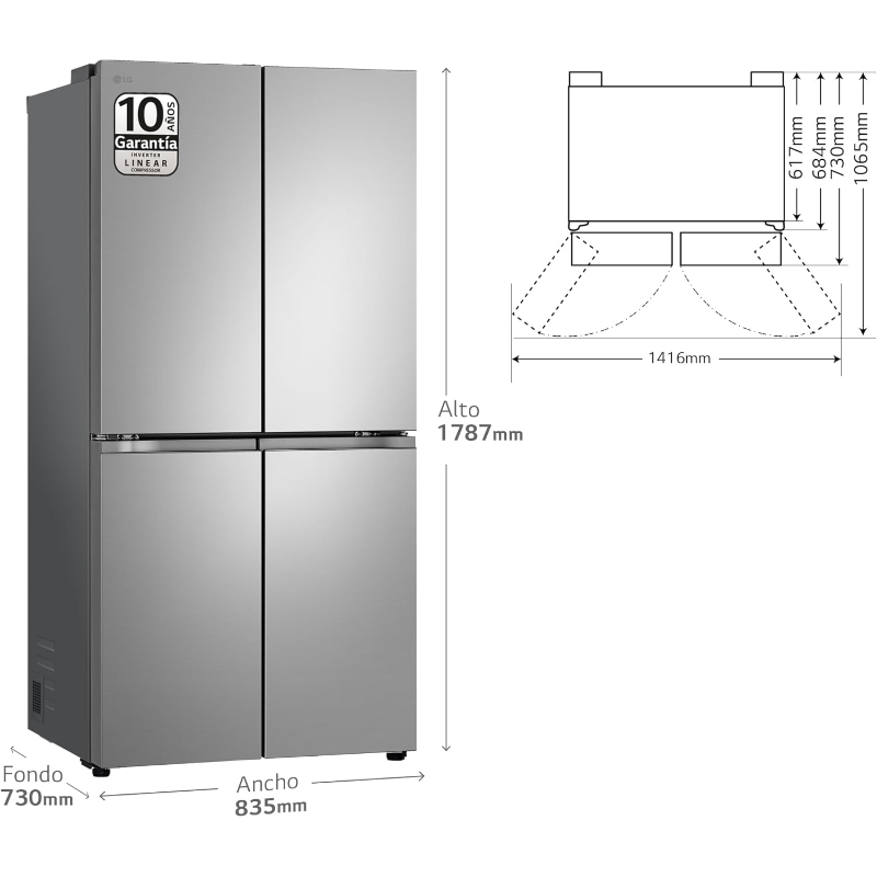 – Conectividad Wi-Fi: permite controlar y diagnosticar el frigorífico desde el móvil mediante la app LG ThinQ.
