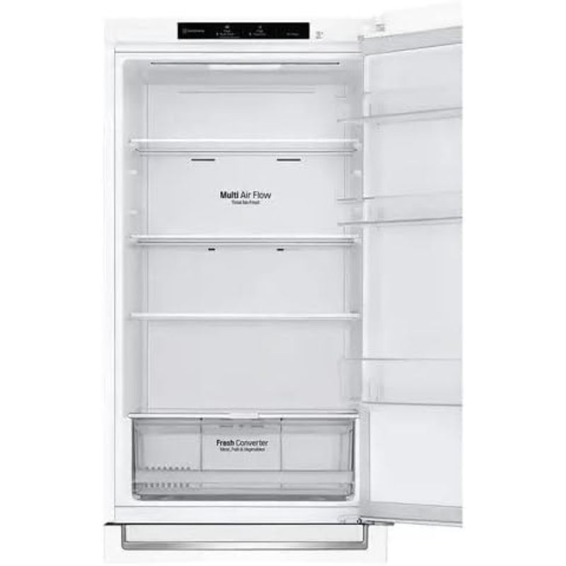 El LG GBP61SWPGN es un frigorífico combi de libre instalación con tecnología No Frost, una capacidad total de 341 litros y una altura de 1,86 metros. Está diseñado para hogares que buscan eficiencia energética, organización interna optimizada y conservación prolongada de alimentos sin necesidad de descongelación manual.